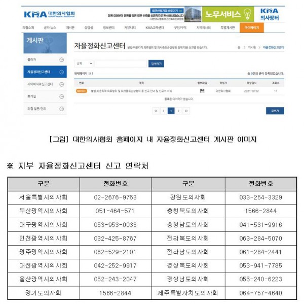 [의협]홈페이지 내 자율정화신고센터 게시판 운영, 자율정화특별위원회의 활동을 강화