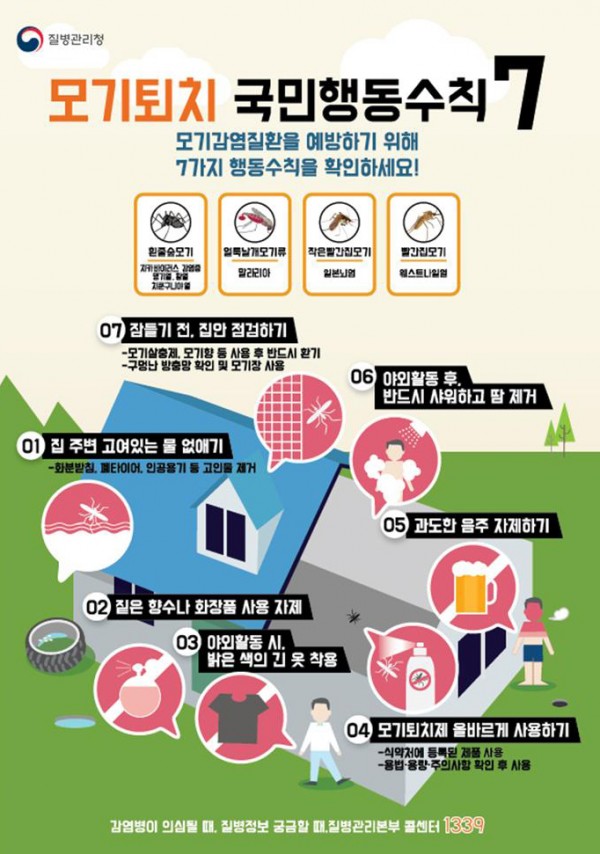 - 야외활동 시 모기 기피제 사용 등 모기물림 예방수칙 준수