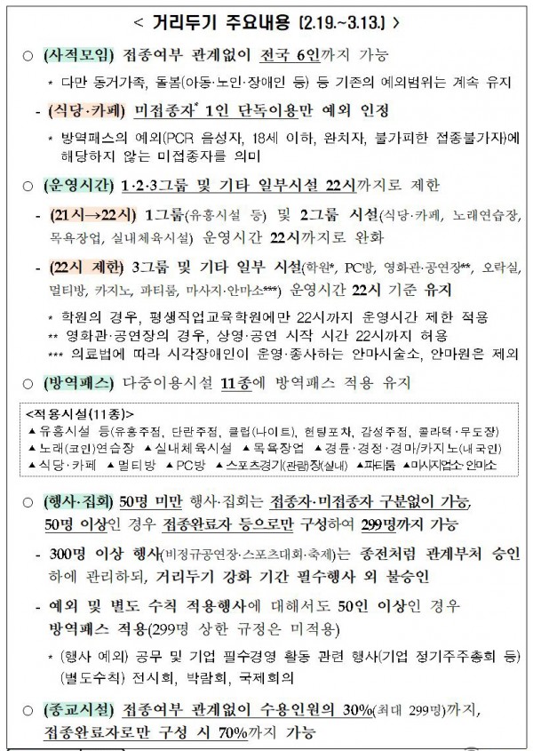 < 거리두기 주요내용 (2.19.~3.13.) >