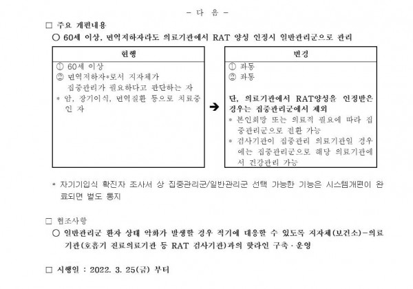 [중수본]전문가용 신속항원검사(RAT) 양성 확진자의 일반관리군 전환 방안 안내