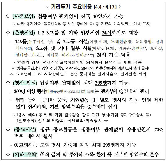 < 거리두기 주요내용 (4.4.~4.17.) >