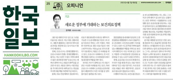 [한국일보]새로운 정부에 기대하는 보건의료정책 by 김지훈