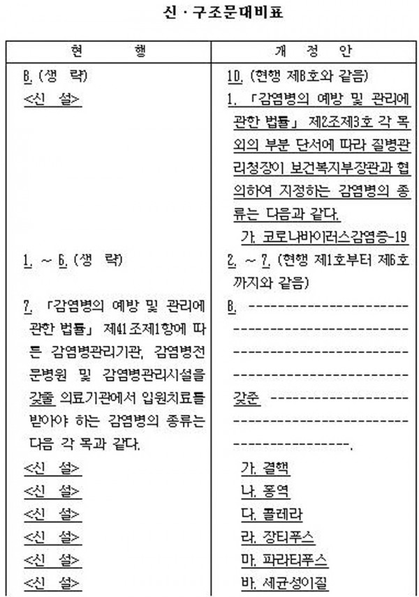 <별첨> 질병관리청장이 지정하는 감염병의 종류 고시 일부개정안