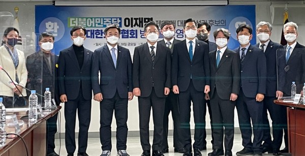 더불어민주당 이재명 대선후보와 코로나19위기대응특별위원회 관계자들이 28일 오후 의협 용산임시회관을 찾아 대한의사협회(회장 이필수)와 함께 코로나19 위기상황 및 오미크론 변이 확산 사태와 관련해 논의했다.