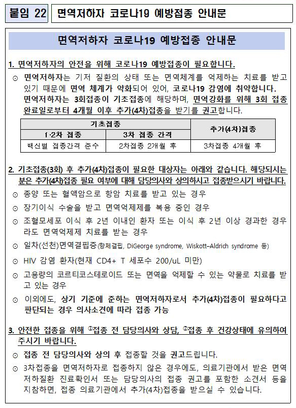 [면역저하자의 범위]  (붙임 22. 면역저하자 대상 안내문 참조)