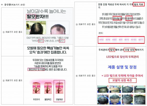 또한 의료기기로 허가받지 않은 공산품은 탈모 치료·예방 등의 효과에 대한 객관적 근거가 없으며, 과도한 사용 시 피부 손상·화상 등의 부작용 우려가 있으므로 주의해야 한다고 했습니다.