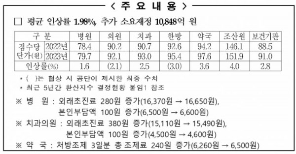 2023년도 요양급여비용 계약, 평균 1.98% 인상 5개 단체와 체결