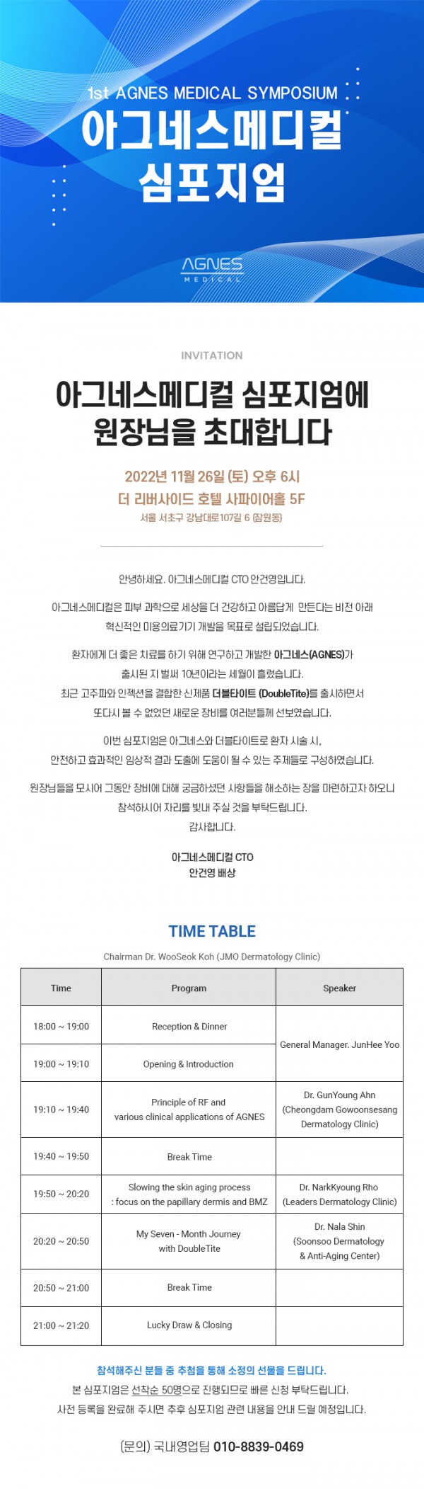 2022 1st AGNES MEDICAL SYMPOSIUM, 11.26(토)“선착순 50명”