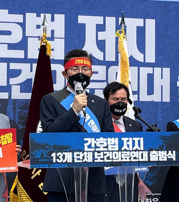 13개 단체 보건의료연대 공동상임위원장인 이필수 대한의사협회 회장은 개회사를 통해 “13보건의료연대는 간호사의 처우 개선을 반대하는 것이 아니다. 기존 보건의료인력지원법의 개정으로 간호사의 처우를 충분히 개선할 수 있고, 그것을 통해 모든 보건의료직역 종사자들이 보다 나은 근무환경에서 일하며 양질의 복지와 처우를 누릴 수 있다”고 말했다.