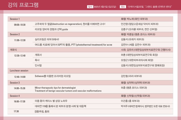▷12:30~12:40 [개회식] 사회: 김유리 (대한임상피부치료연구회 간행이사)