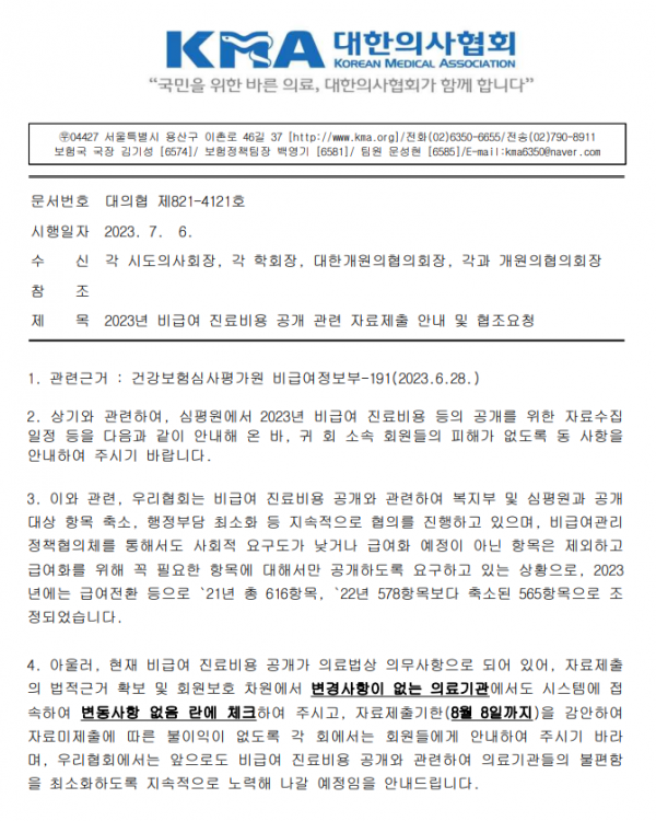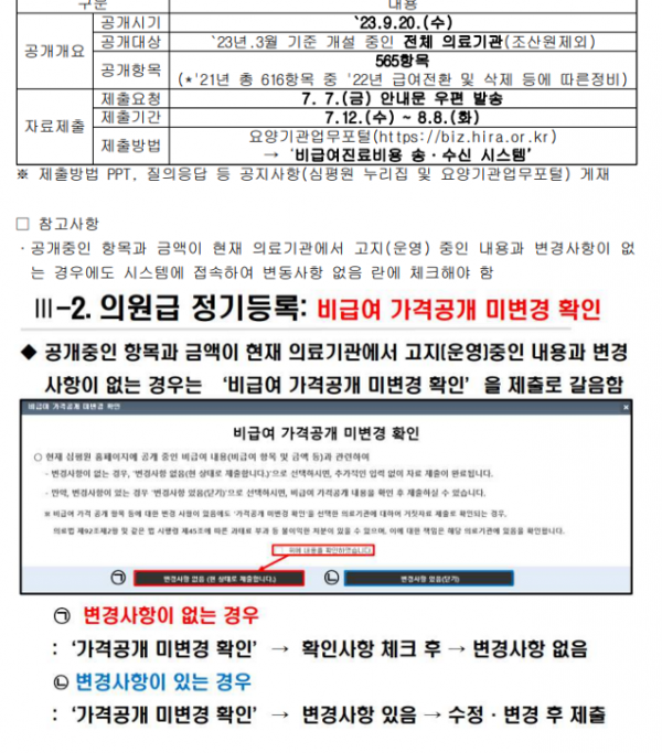 [심평원]2023년 비급어 진료비용 공개관련 자료제출 안내(8.8.마감)