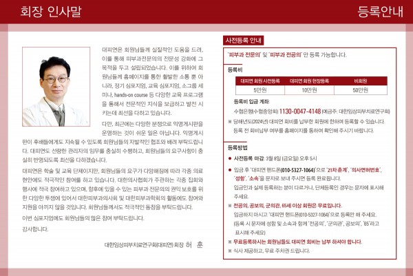 ▷회비 납부 계좌: 수협은행(수협중앙회) 1010-1194-4728 (예금주: 대한임상피부치료연구회)