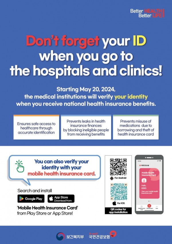 2024년 5월 20일부터 의료기관에서 건강보험을 적용받으려는 사람은 신분증 제시 등 본인 확인 절차를 거쳐야 합니다.