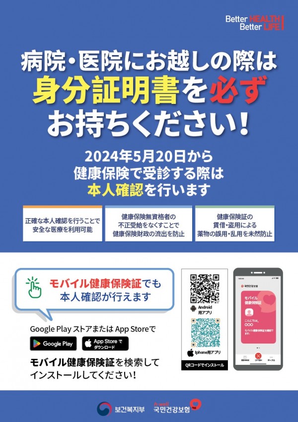 [외국인용 포스터]건강보험 적용 시 신분증 제시 등 본인 확인 절차 의무화 안내문 for foreigner
