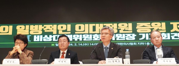 저는 비대위원장 직을 맡으면서 정부의 불합리한 의대정원 증원 추진을 반드시 막아내겠다는 굳은 결심을 대외에 알려드립니다. 정부의 겁박 등 앞으로 예상되는 어떠한 역경과 시련에도 굴하지 않고 의료계 모두가 합심하여 대응해 나갈 수 있는 구심점이 될 수 있도록 하겠습니다.