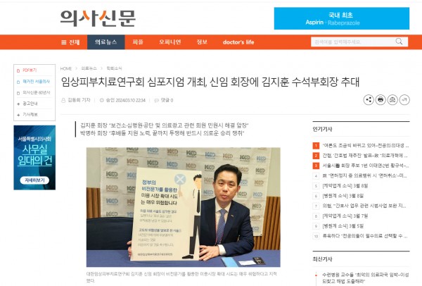 3월 10일 열린 대한임상피부치료연구회(이하 대피연) 정기총회에서 인준을 거쳐 제5대 회장에 취임한 김지훈 회장이 기자간담회에서 필수의료 패키지와 관련하여 이런 입장을 밝혔다.