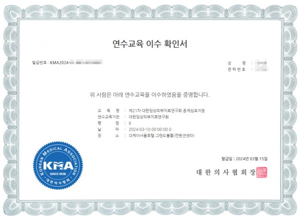 대한임상피부치료연구회(대피연)은 의협 공식 연수교육기관입니다.