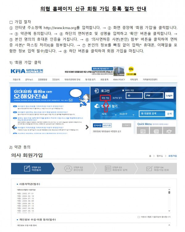 #첨부 : 의협 홈페이지 신규 회원 가입 등록 절차 안내문