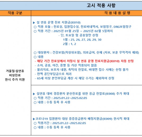 - 1월 22일~2월 5일 '2주' 비상응급 대응 주간 지정, 추가 비용 지원