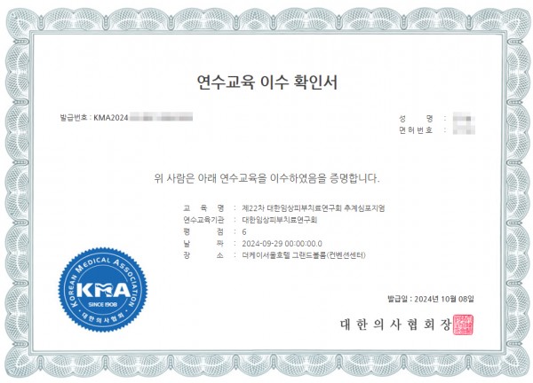 대한임상피부치료연구회(대피연)은 의협 공식 연수교육기관입니다.