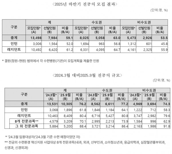 보건복지부(장관 정은경)와 수련환경평가위원회(위원장 유희철)는 9월 2일(화) 2025년도 하반기 전공의 모집 결과를 발표하였다.