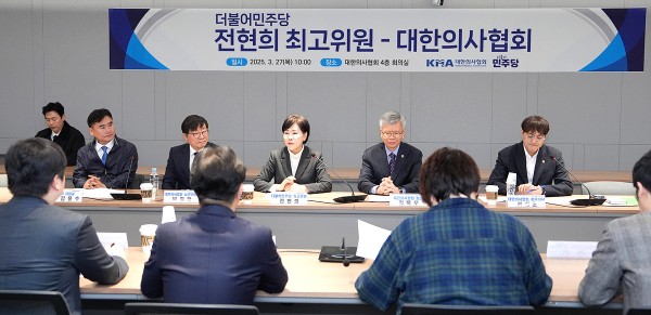 이날 간담회에는 더불어민주당 전현희 최고위원과 대한의사협회 김택우 회장, 박명하 상근부회장, 이태연 부회장, 박단 부회장, 서신초 총무이사, 박명준 기획이사, 한진 법제이사, 이재만 정책이사가 참석했다.