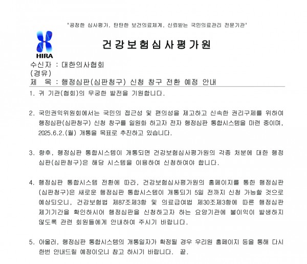 [심평원]행정심판(심판청구) 신청창구 전환 예정 안내