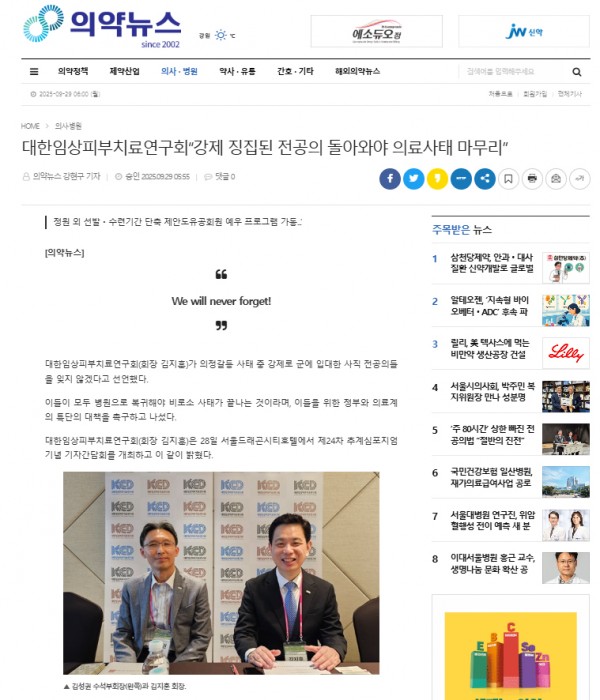 [의약뉴스]대한임상피부치료연구회“강제 징집된 전공의 돌아와야 의료사태 마무리”