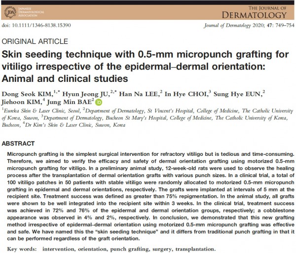 SST c 0.5mm micropunch grafting for vitiligo (Journal of Dermatology 2020) by 김동석.배정민