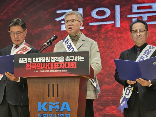이날 행사에서 김택우 의협 회장은 "시간에 쫓기지 말고 과학적이고 객관적인 지표와 절차를 통해 신중하게 검토돼야 한다"며 "지역별, 전문과목별 정밀한 추계없이 총량 중심의 탁상공론으로 도출된 결과는 결코 신뢰받을 수 없다"고 지적했다.