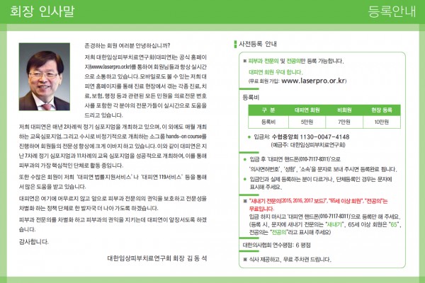- 인사말: 조경환 (대한임상피부치료연구회 명예회장)