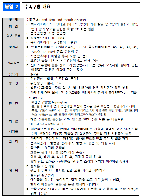 = 주로 5세 이하 영유아의 콕사키바이러스, 엔테로바이러스 감염에 의해 발생하는 감염병입니다.
