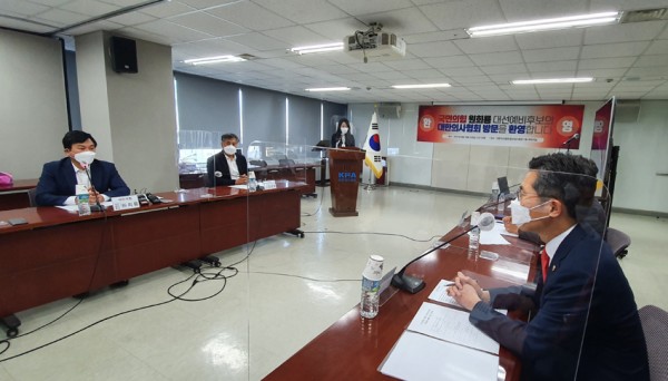 대선예비후보들과 잇따라 정책간담회를 열고 있는 대한의사협회(회장 이필수)가 18일에는 코로나19 4차 팬데믹 위기 상황에서 최선의 극복 방안을 모색하기 위해 국민의힘 원희룡 대선예비후보 일행과 소통의 시간을 가졌다.