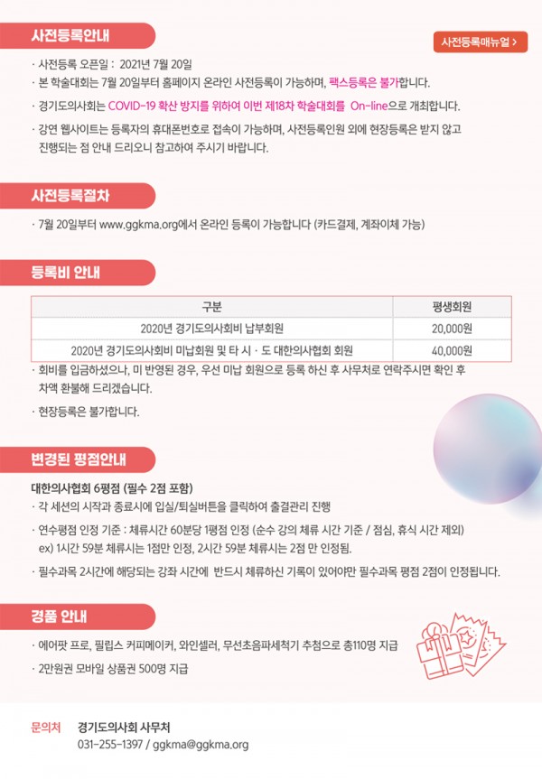 ▷사전등록방법 : 경기도의사회 홈페이지 (www.ggkma.org) 온라인 등록 가능