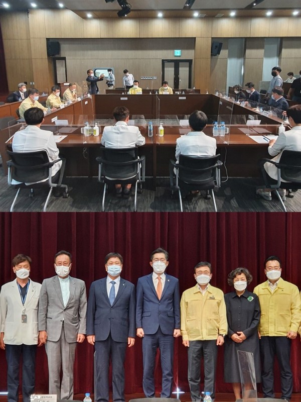 권덕철 보건복지부장관과 대한의사협회·대한병원협회·대한간호사협회·대한중소병원협회 등 의료 단체장이 26일 오후 코로나19 거점 전담병원인 오송 베스티안병원에서 의료계와 정부 간 협력방안 논의를 비롯하여 현장 애로사항 청취를 위한 간담회를 진행했다.