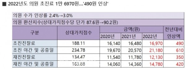 - 2022년도 의원 초진료 1만 6970원…'490원 인상’