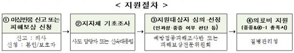 - 국가보상 신청 대상 확대(30만원 이상-->전액)