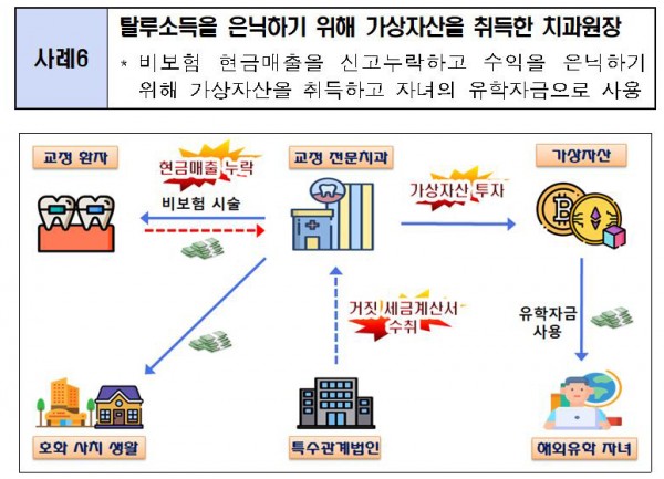 ○○치과는 지역에서 호황을 누리는 교정 전문치과로 비보험 현금매출을 신고누락하고 수익을 은닉하기 위해 수십억 원을 가상자산에 투자하면서