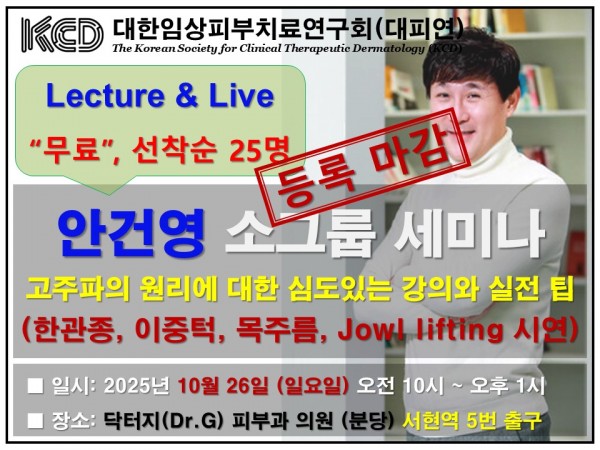 [마감]안건영 소그룹 세미나 (고주파를 이용한 한관종, 이중턱, 목주름 치료).10/26(일)
