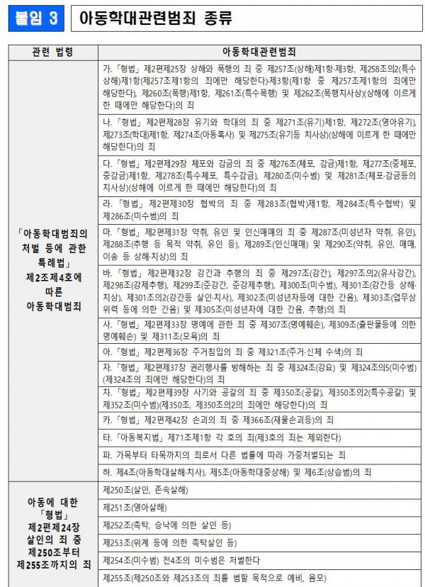 [복지부]아동학대관련범죄 전력자 적발(아동복지법.아동학대관련범죄 전력자 취업제한 제도.아동학대관련범죄 종류)