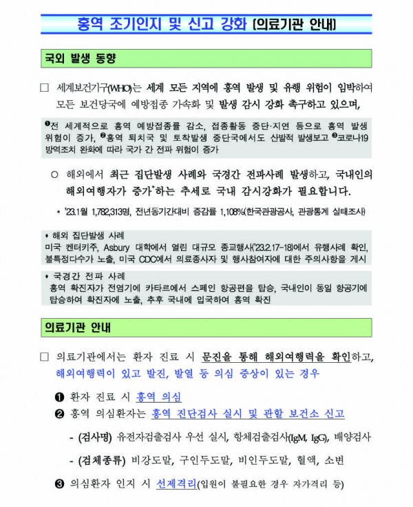 [질병청]홍역 조기인지 및 신고 강화 (의료기관 안내)