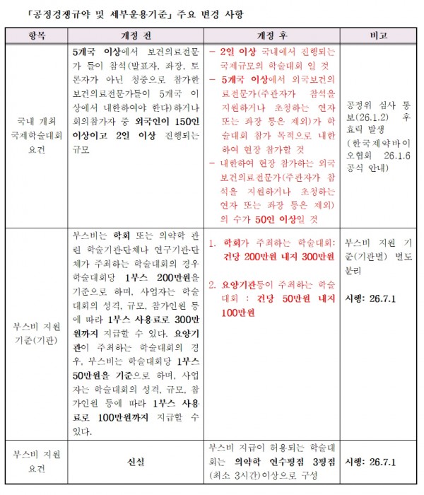 다만 학술대회 개최·운영 지원과 전시·광고 관련 핵심 조항은 즉시 시행되지 않고, 오는 7월 1일부터 적용되는 유예 기간이 설정됐다. 제도 변화에 따른 충격을 완화하고, 학술단체와 산업계가 제도 전환에 대비할 수 있도록 한 조치다.
