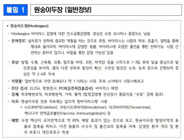 [질병청]원숭이두창 진단체계 구축 (유럽 미국 확산 중, 국내 유입 대비 선제적 대응)