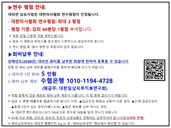 ※전공의 회원도 2026년도부터는 대피연 회비 납부 부탁드립니다(유공회원은 계속 면제).