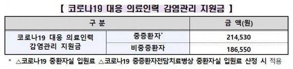 - 코로나19 대응 의료인력 감염관리 지원금 추가 적용