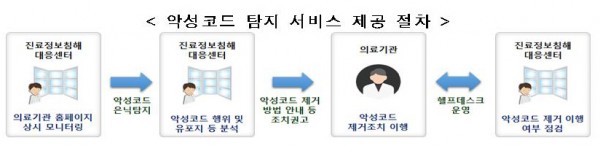 □ 아울러, 민간 의료기관 정보보호를 위하여 지난 2월 1일부터 보건복지부가 무료로 제공하고 있는 민간의료기관 홈페이지 악성코드 탐지 서비스*도 많은 의료기관의 신청을 요청하였다