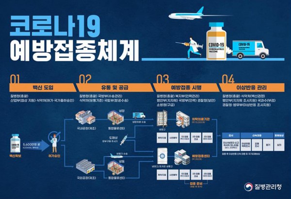 정부는 예방접종의 안전하고 신속한 시행을 위해 백신의 도입부터 허가, 유통, 예방접종 시행, 이상반응 관리까지의 전 과정을 범정부의 가용 자원을 총동원하여 준비하였으며 앞으로도 총력 대응한다.