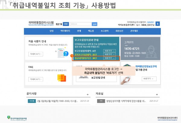 [식약처]마약류통합관리시스템 '취급내역불일치' 조회 서비스 제공 안내