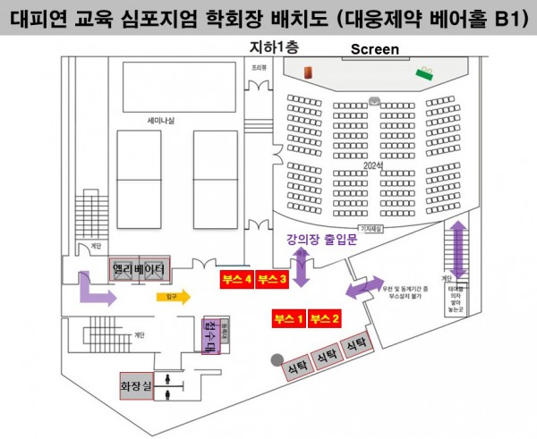 [교육심포지엄 식사안내]샌드위치 제공, 베어홀 강의장 내 식음료 취식 불가(학회장배치도)