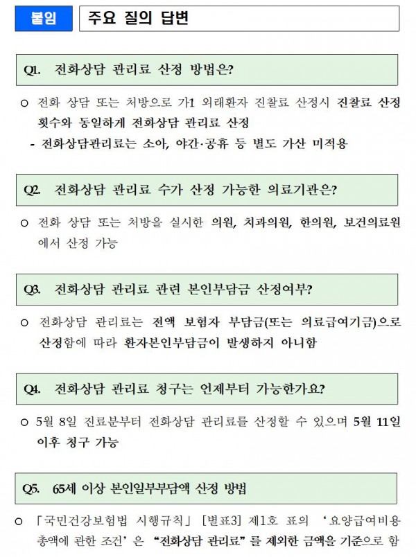 - (내용) 전화 상담 또는 처방 시 전화상담 관리료 별도 산정